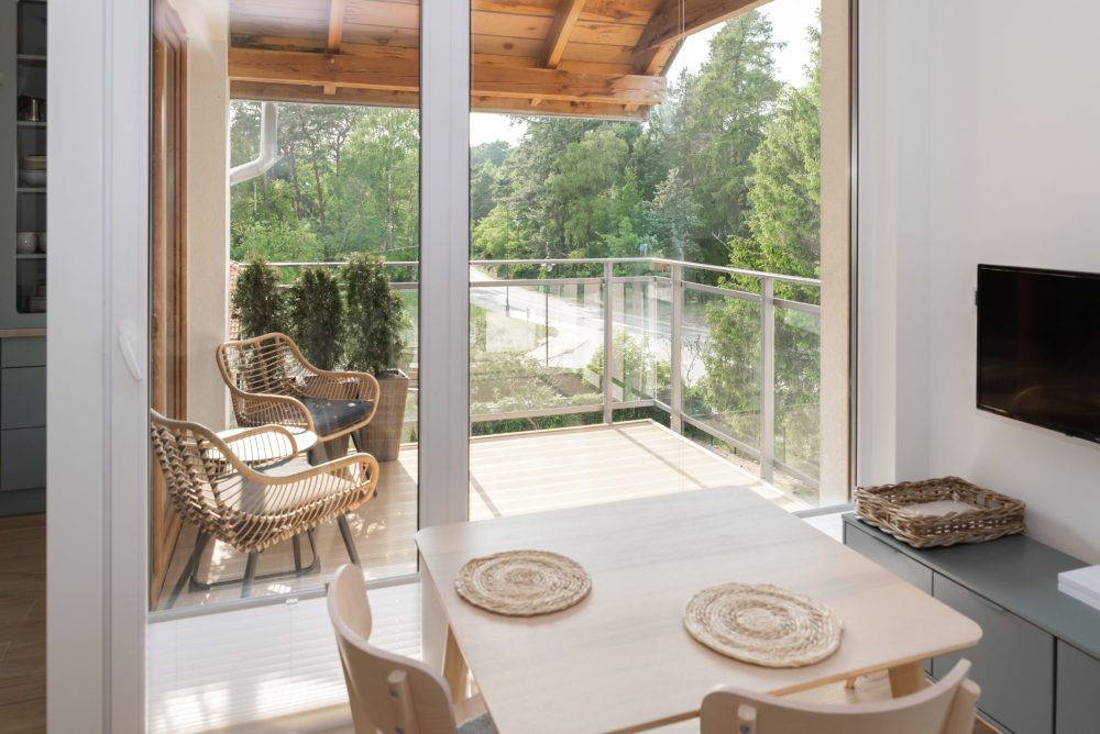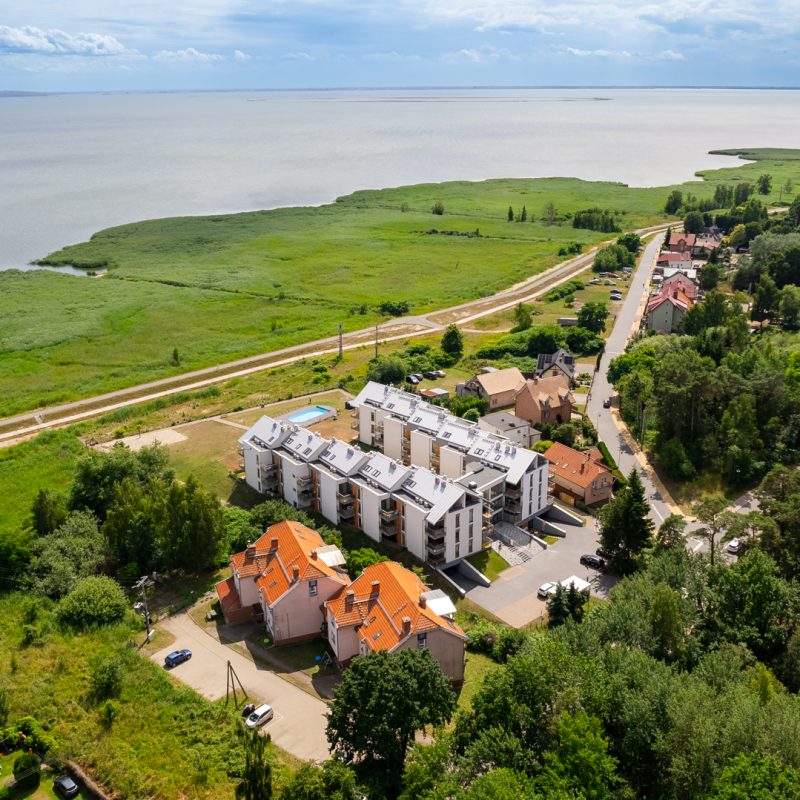 Jasny, elegancki apartament w nowoczesnym budynku z basenem tuż przy malowniczym Zalewie Wiślanym. Do dyspozycji gości jest bezpłatny, prywatny parking podziemny oraz winda. Cicha okolica i bliskość lasu sprzyjają wypoczynkowi i relaksowi. Na miejscu znajduje się sala zabaw dla dzieci, przechowalnia rowerów oraz boisko do siatkówki nad samym zalewem. Dodatkowo dostępna jest odpłatna wypożyczalnia rowerów, leżaków, parawanów oraz wózków plażowych, zapewniająca jeszcze więcej możliwości aktywnego spędzania czasu.