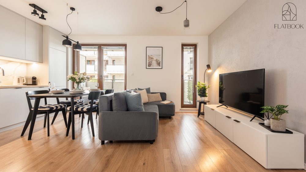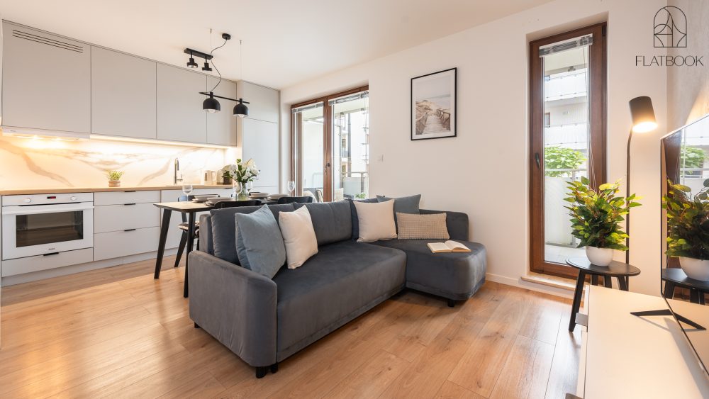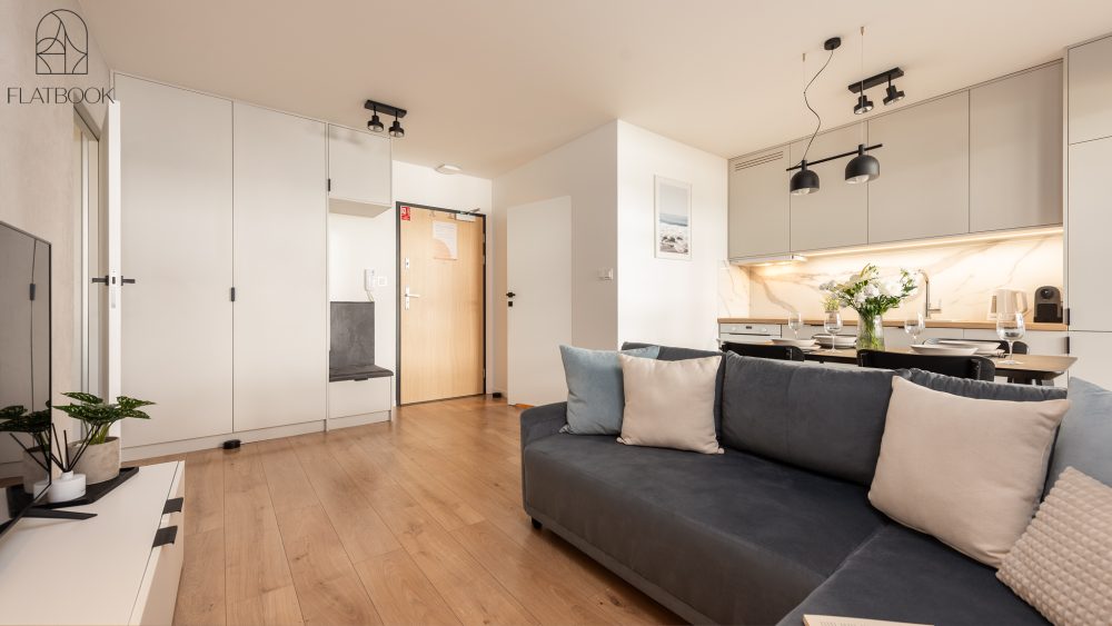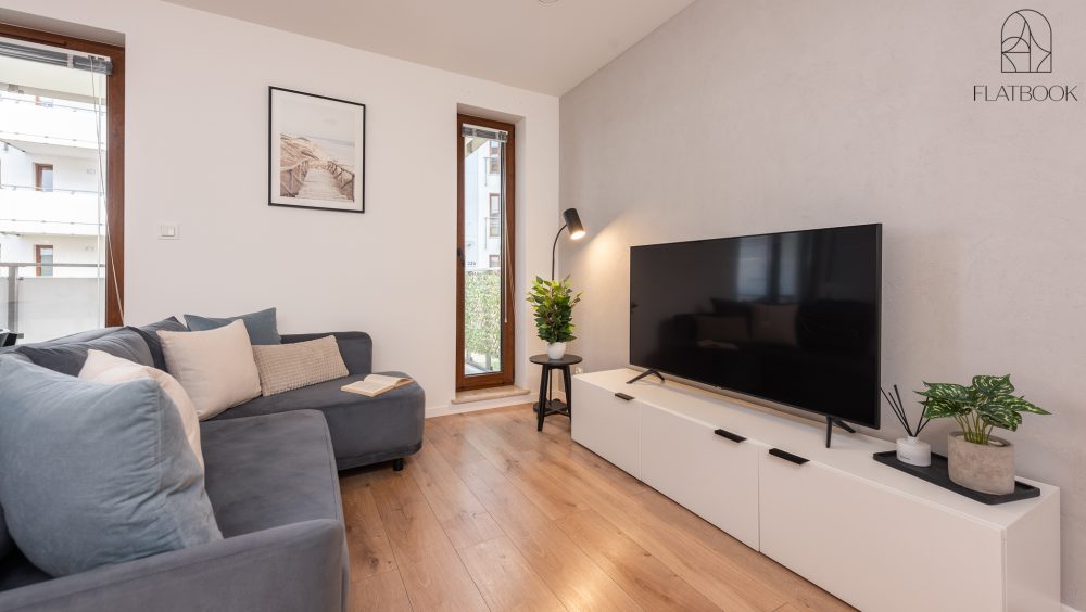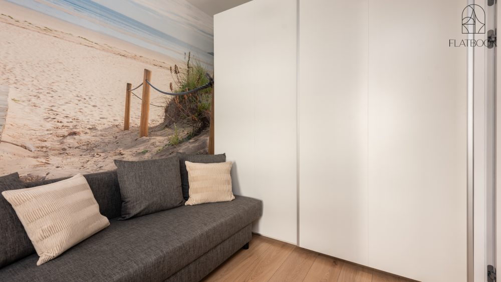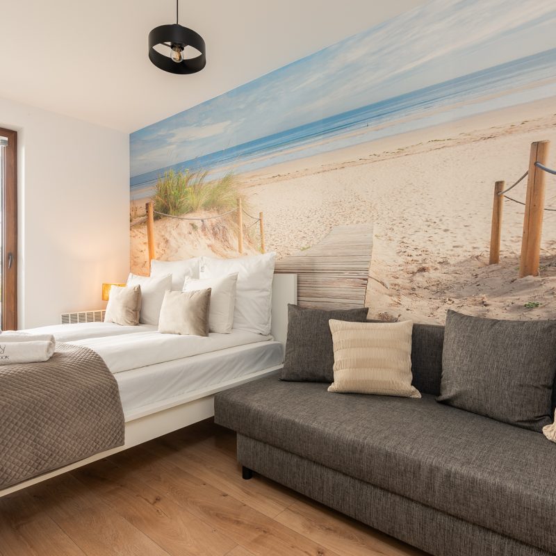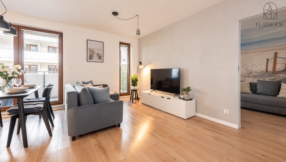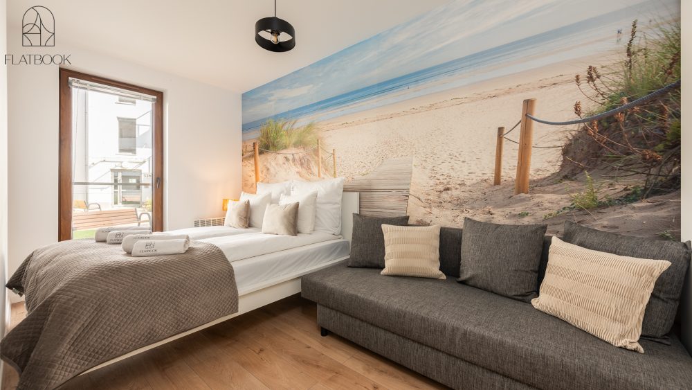 Jasny, elegancki apartament w nowoczesnym budownictwie. Na miejscu dostępny jest bezpłatny, prywatny parking zewnętrzny. Wspaniała lokalizacja – w niedalekiej odległości od szerokiej, piaszczystej plaży. W okolicy znajdują się sklepy spożywcze, kawiarnie oraz tereny zielone i miejsca rekreacji sprzyjające wypoczynkowi na świeżym powietrzu. To idealne miejsce dla osób ceniących bliskość natury oraz łatwy dostęp do niezbędnych udogodnień. Na terenie obiektu znajduje się także plac zabaw dla dzieci.