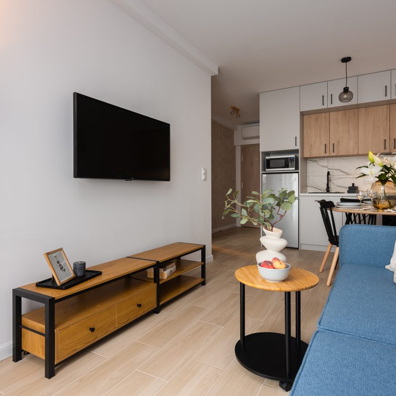 Jasny, elegancki apartament w nowoczesnym budownictwie. Na miejscu dostępny jest bezpłatny prywatny parking oraz winda. Wspaniała lokalizacja tuż przy lesie. Na terenie obiektu znajduje się wspólna sala rozrywki, wyposażona w telewizor, stół bilardowy oraz łazienkę.