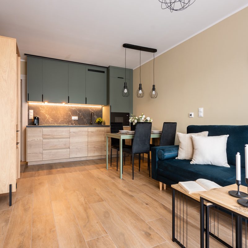 Bright and elegant apartment in a modern building. A free private outdoor parking space is available on the premises. Additionally, the property features a children's playground, a bike storage room, a multi-purpose sports field, an outdoor gym, and barbecue shelters. The excellent location right next to the forest provides direct access to the path leading to the beach, making it an ideal spot for nature lovers and those who enjoy active outdoor recreation.