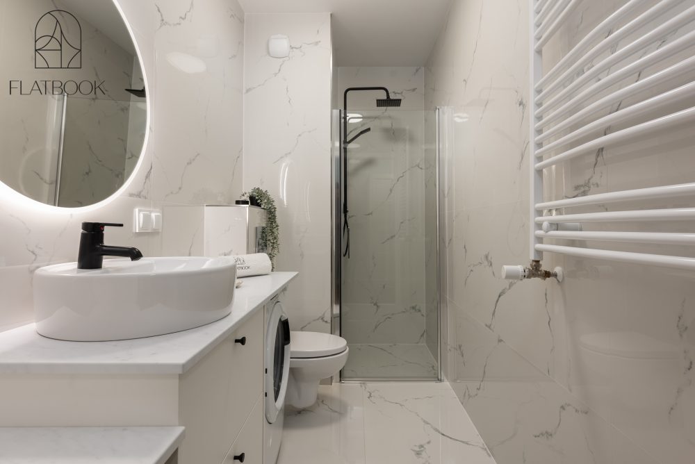Bright, elegant apartment in modern construction. Free private parking and elevator are available on site. Wonderful location right next to the forest. The property has a shared entertainment room equipped with a TV, billiard table, and a bathroom.